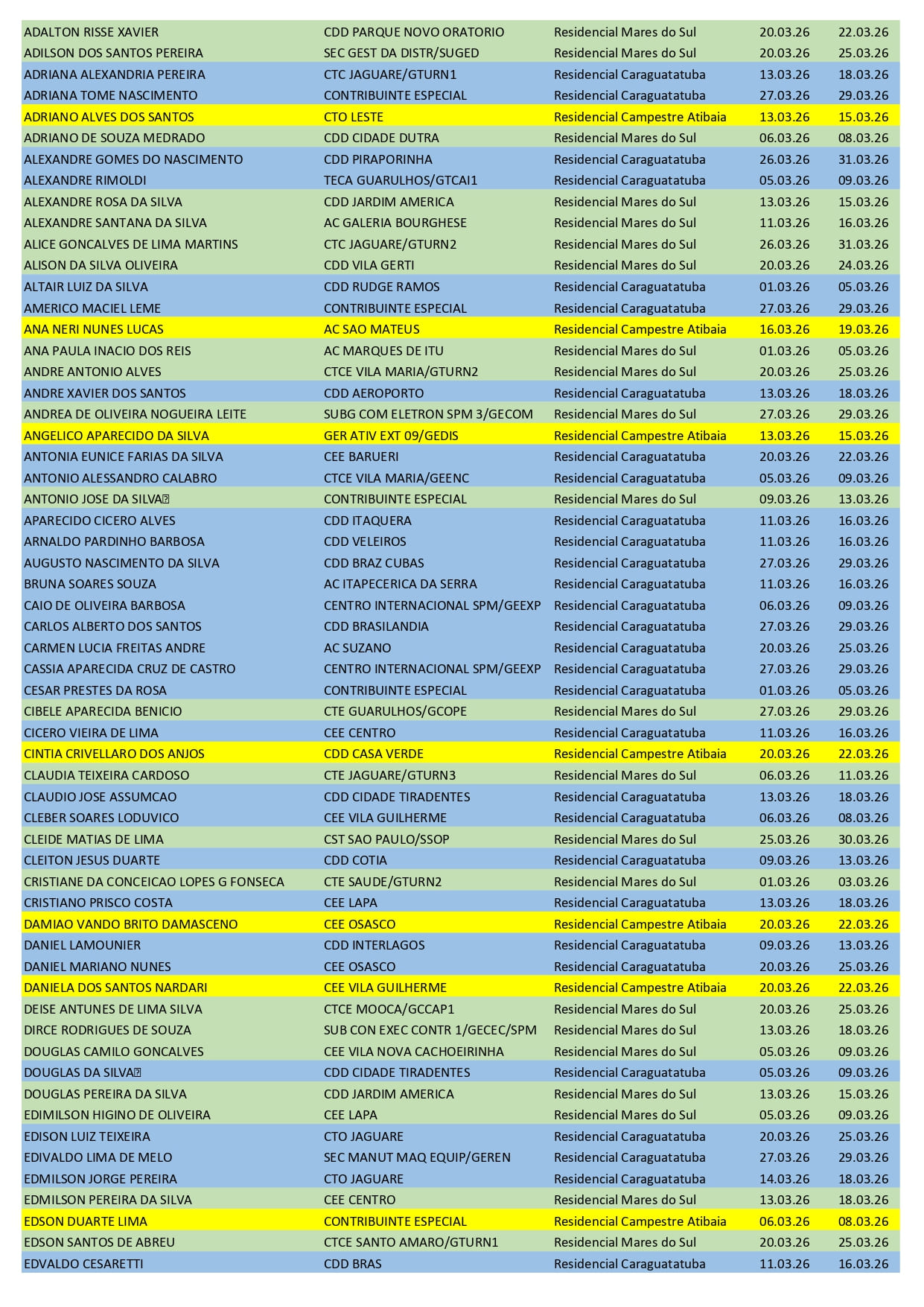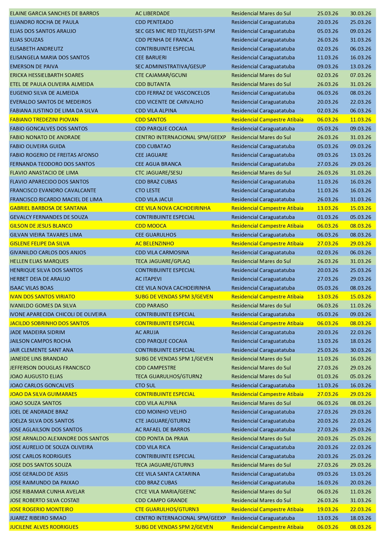 LISTAGEM PUBLICADA EM 09/02 ÀS 15H00