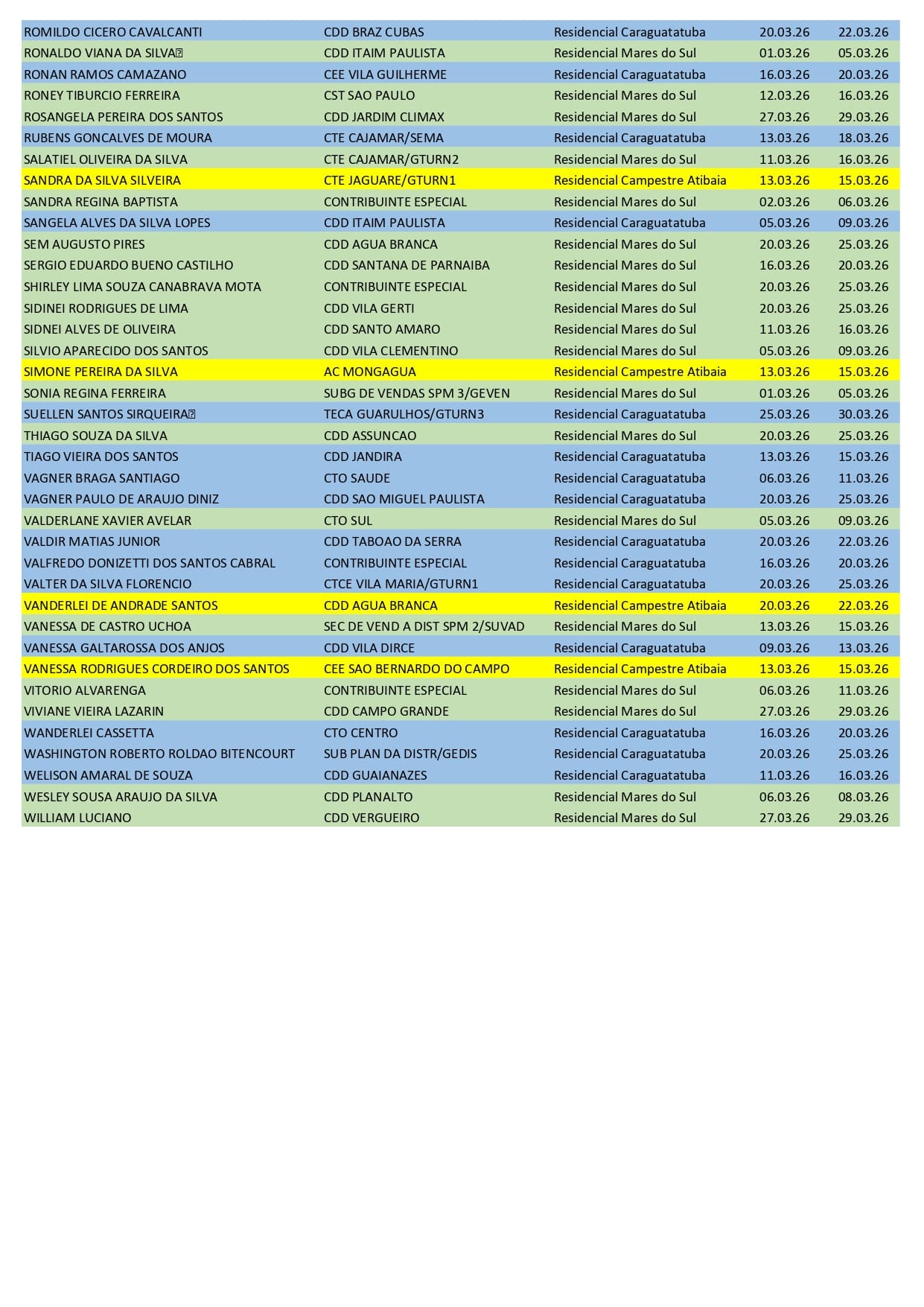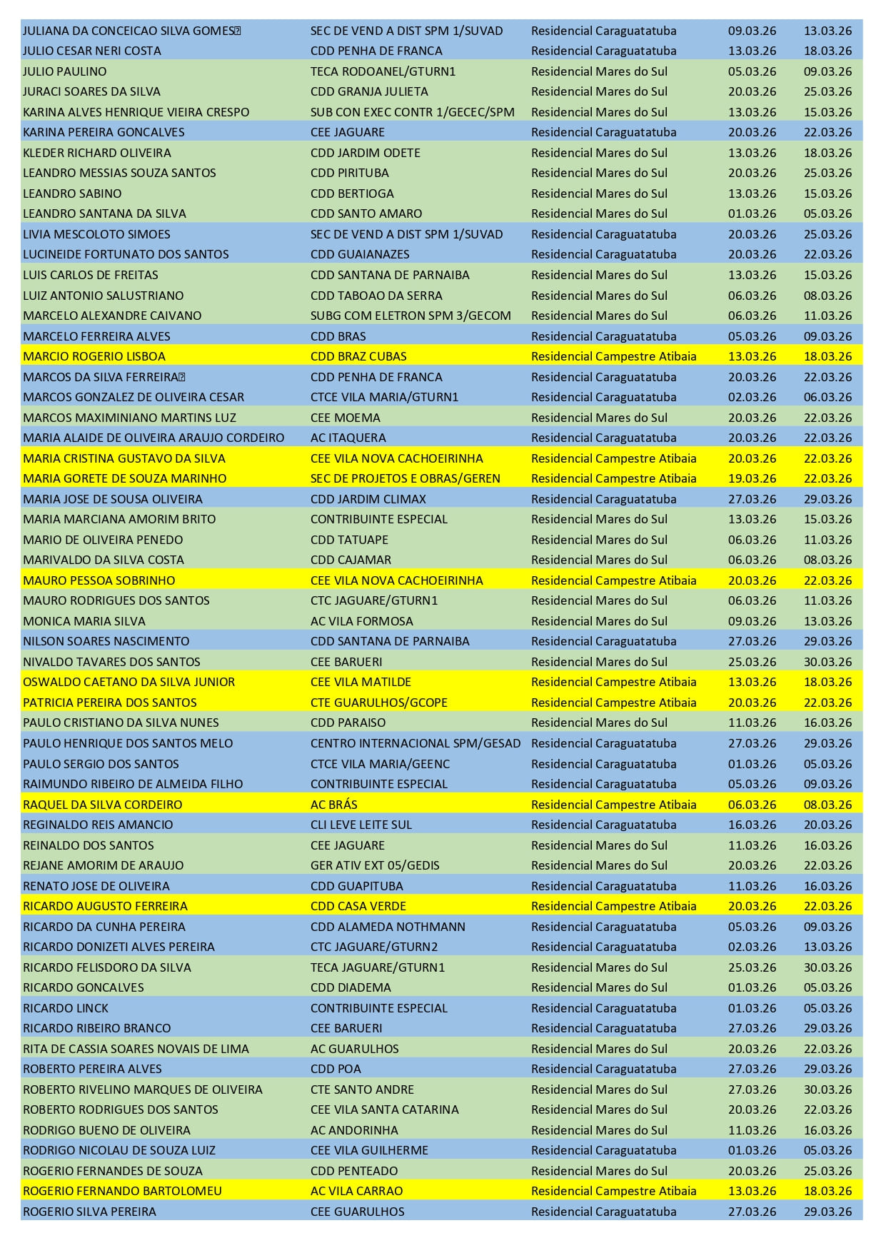 LISTAGEM PUBLICADA EM 09/02 ÀS 15H00.