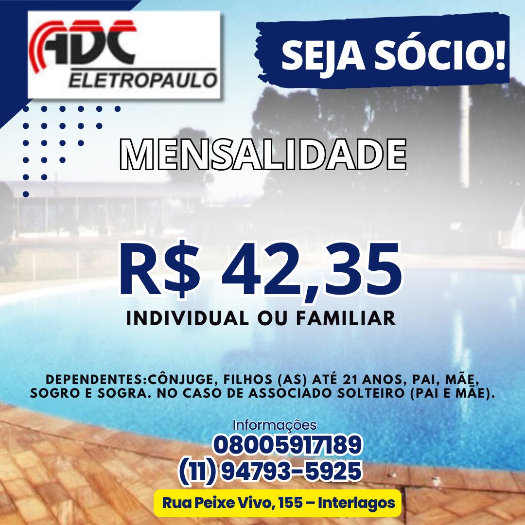 Informamos que, conforme determinado pela Diretoria do ADC Eletropaulo, será liberado para entrada somente os associados que estiverem com sua mensalidade junto ao clube em dia, conforme listagem encaminhada mensalmente pela ARCO/SPM.